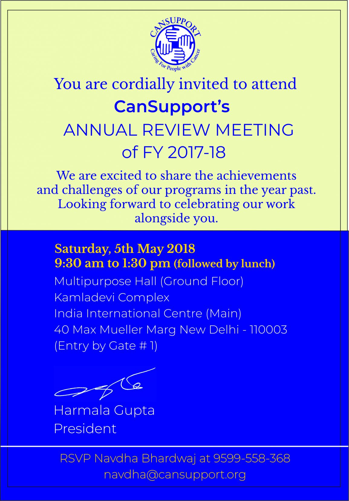 CanSupport Annual Review Meeting 2017-18 to be held on May 5th View Invite