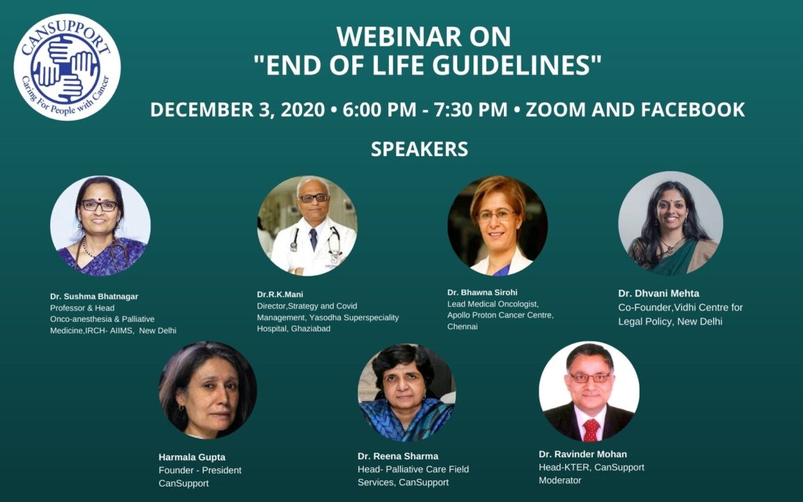 On December 3, 2020, CanSupport organized a webinar on End-of-Life Guidelines. The expert panel of speakers included: Dr. Sushma Bhatnagar: Professor & Head, Onco-anesthesia & Palliative Medicine, AIIMS, New Delhi Dr. R. K. Mani: Director … Read More