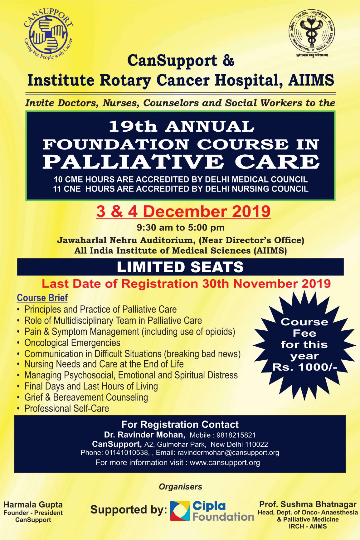 We would like to invite Doctors, Nurses, Counselors and Social Workers to participate in the 19th Annual Foundation Course in Palliative Care being organized by CanSupport and Institute Rotary Cancer Hospital, AIIMs on 3 and … Read More