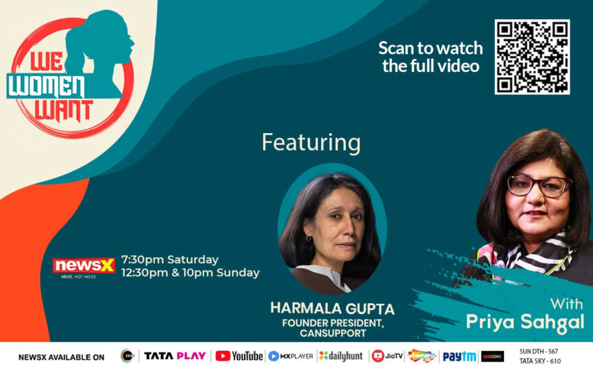 Harmala Gupta was invited for NewsX's feature 'We Women Want' where she conversed with Priya Sahgal on August 3, 2024. She shared about how CanSupport came into being and continues to provide free of charge services to those in need. She emphasised that palliative care must be made a part of universal health coverage and public health domain.